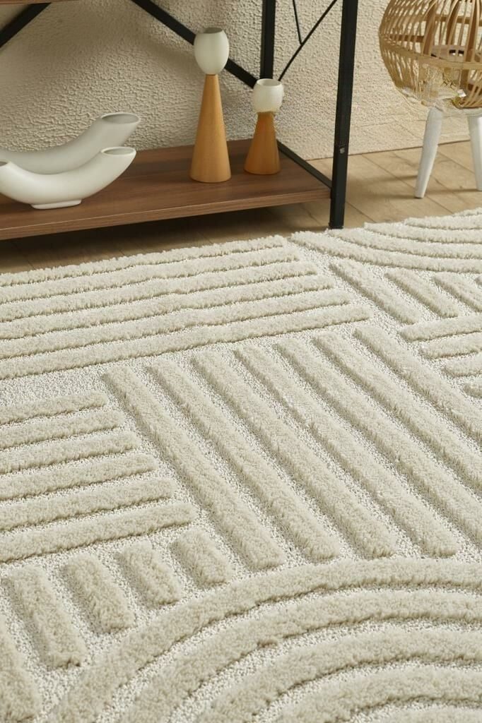 Apportez une touche nordique et intemporelle à votre intérieur avec ce tapis au design épuré et aux lignes géométriques douces. Son polypropylène de haute qualité lui confère une excellente résistance à l’usure, aux taches et à l’humidité, en faisant un choix idéal pour les espaces de vie les plus fréquentés. Antistatique et facile à entretenir, il conserve son aspect neuf sans effort. Son toucher agréable sous les pieds et son style minimaliste s’intègrent parfaitement dans un salon moderne, une chambre cocooning ou un bureau élégant.