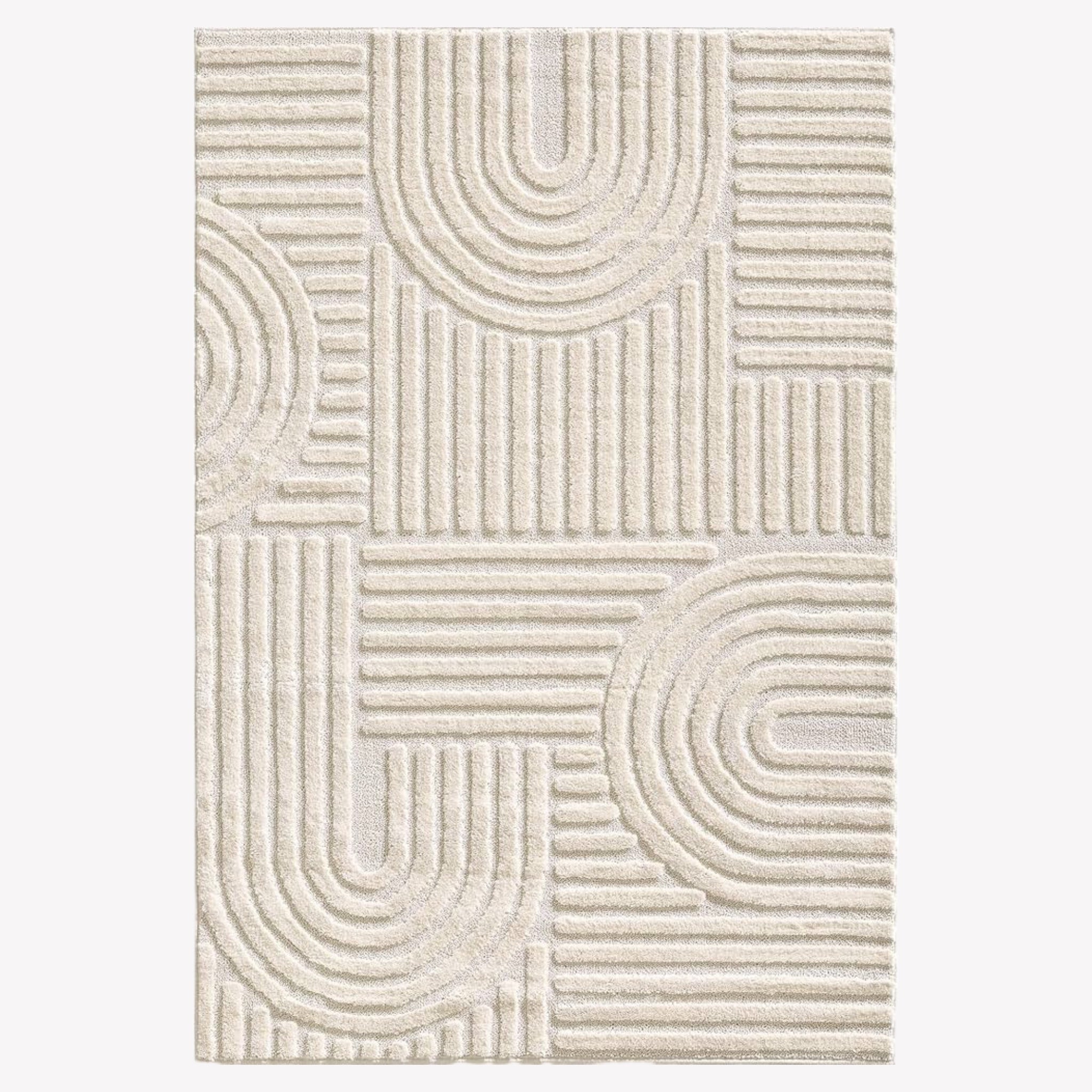 Tapis crème à motifs minimaliste en relief